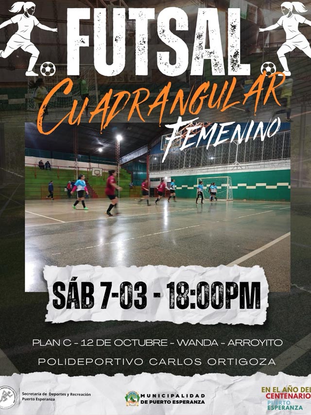 AGENCIA MISIONES.UNO | En el marco de las actividades por el Día Internacional de la Mujer, Puerto Esperanza será sede de un cuadrangular de futsal femenino que reunirá a equipos locales en el Polideportivo Carlos Ortigoza.