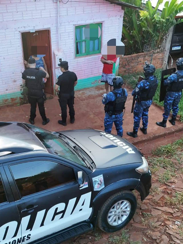 Los procedimientos fueron ejecutados por efectivos de la comisaría local, junto a la División Infantería de Andresito, la División VAPONT Iguazú y comandos de Wanda y Puerto Esperanza, abarcando un total de cinco viviendas.